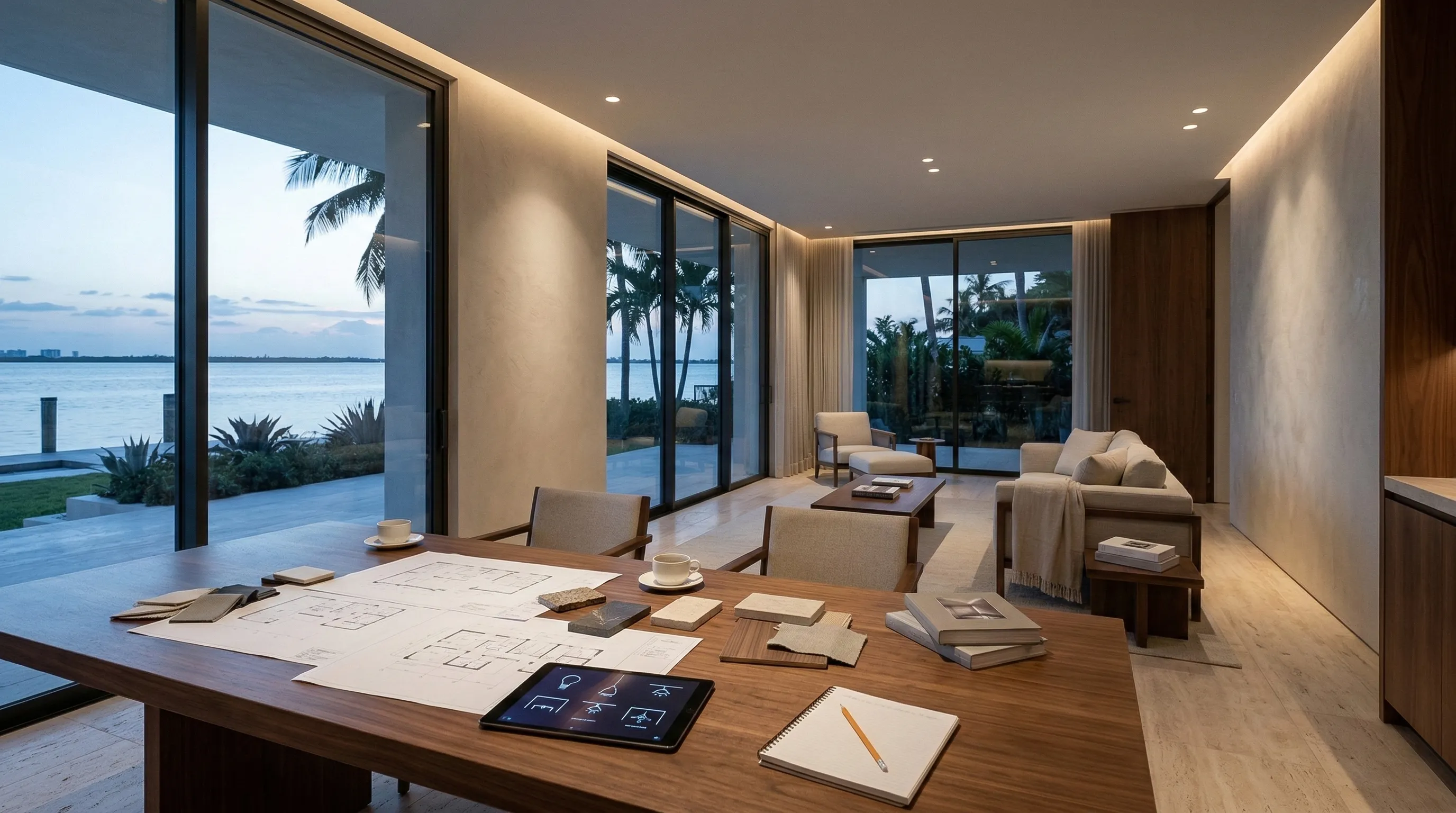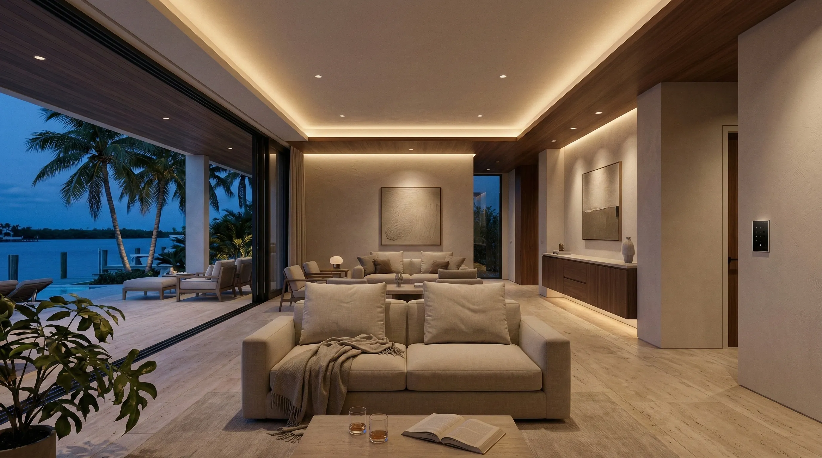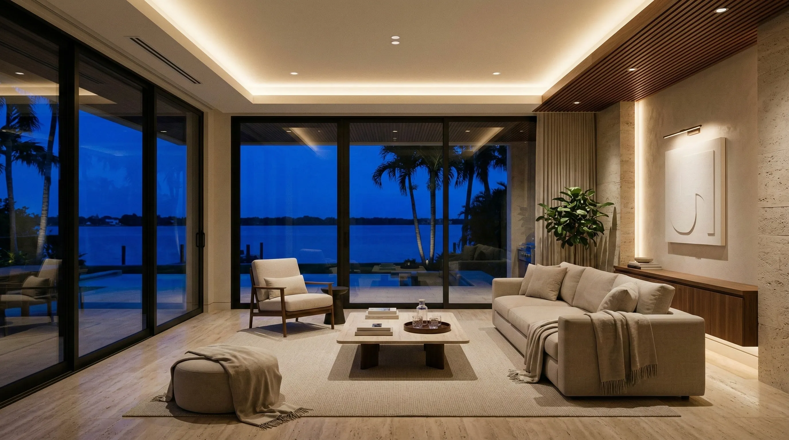 The right lighting doesn’t “decorate” a home—it defines it. We design layered, glare-controlled lighting for luxury interiors, landscapes, and docks, then commission it so every scene feels natural and consistent.