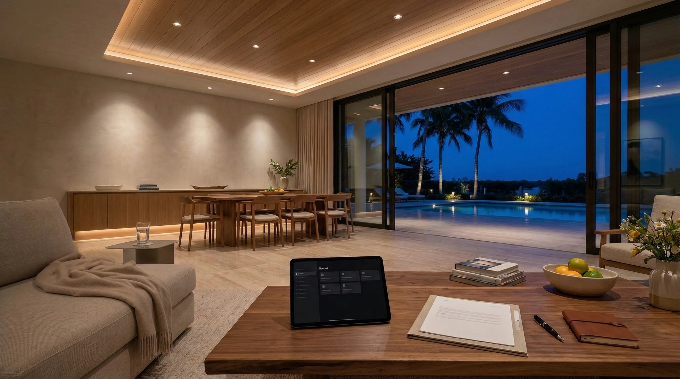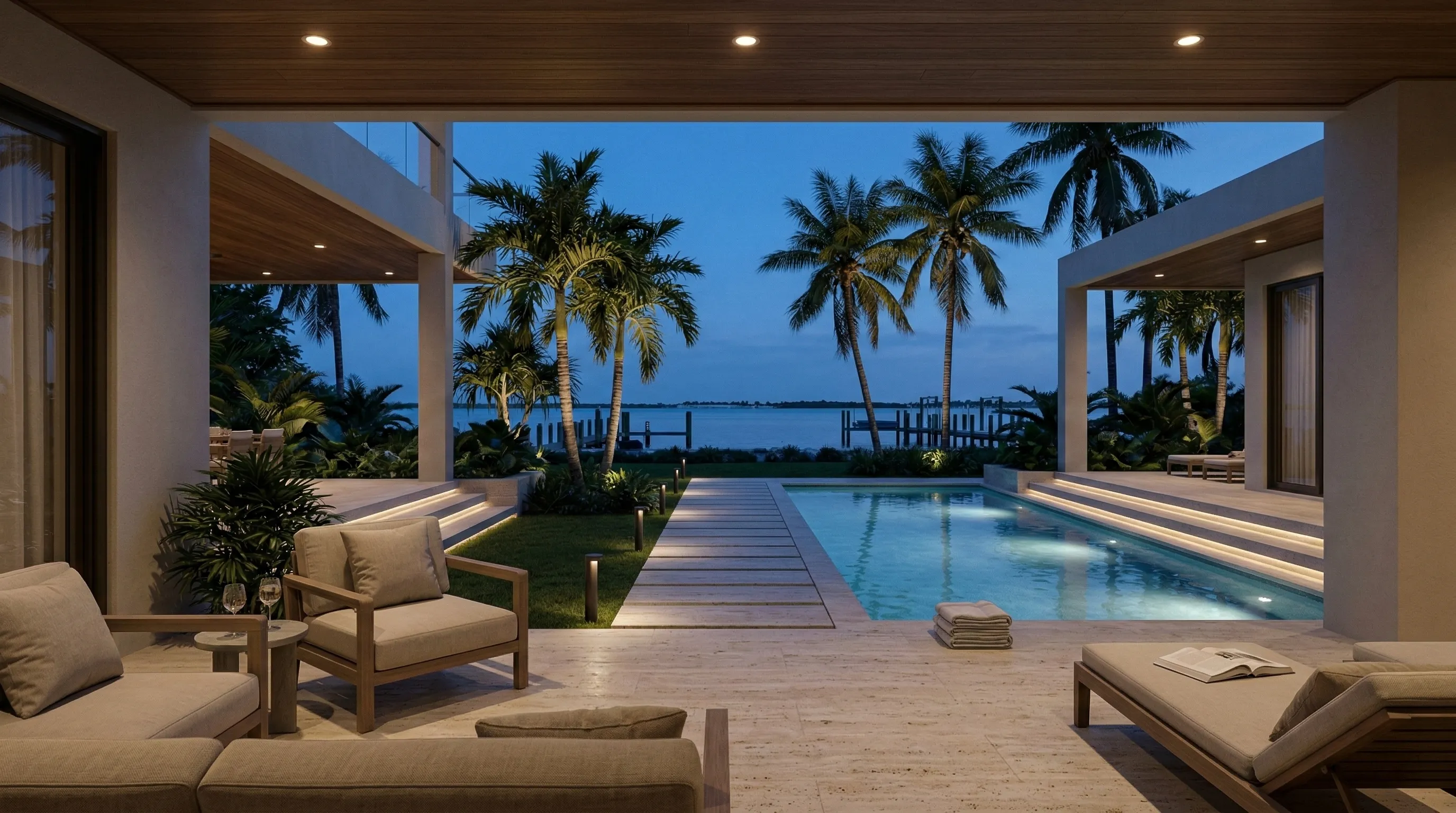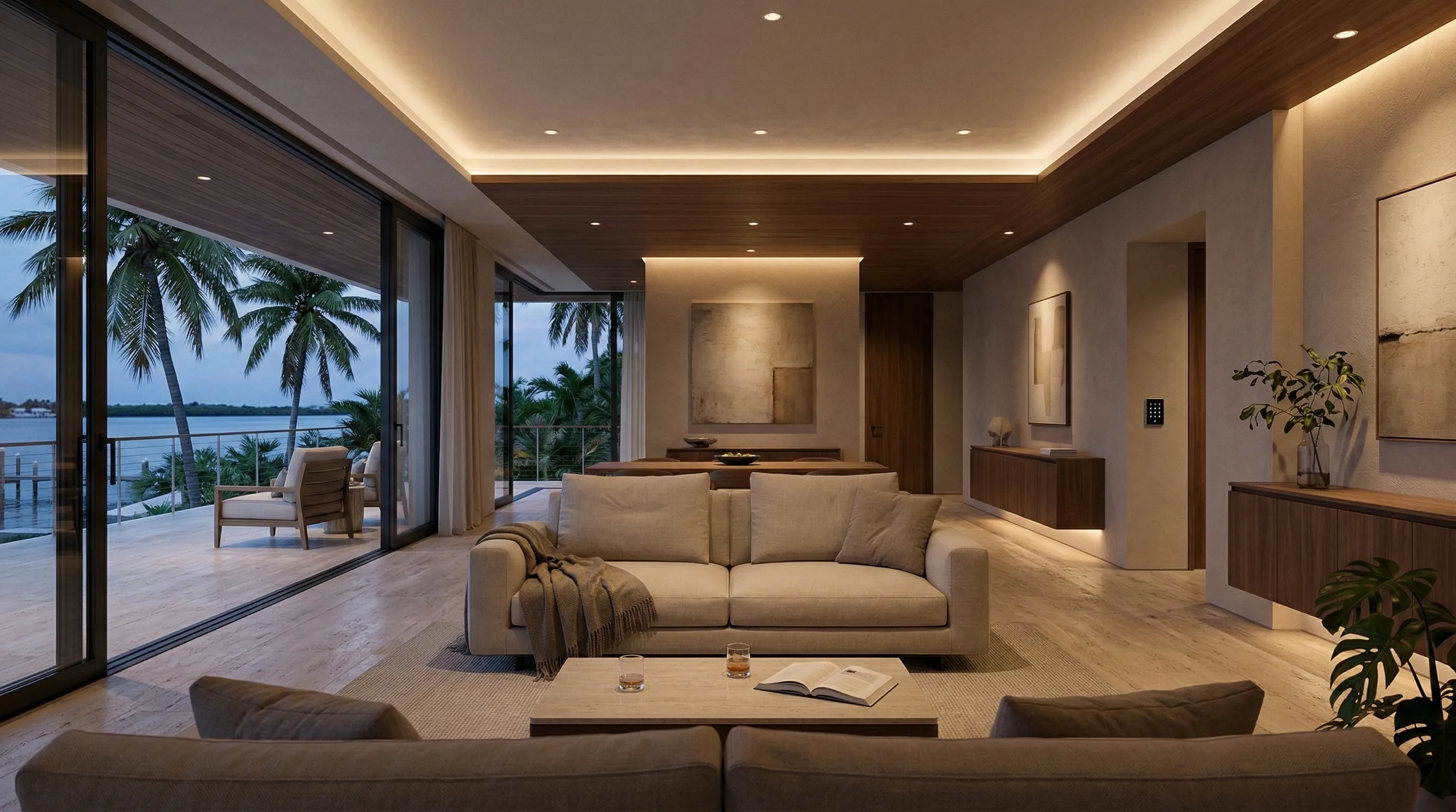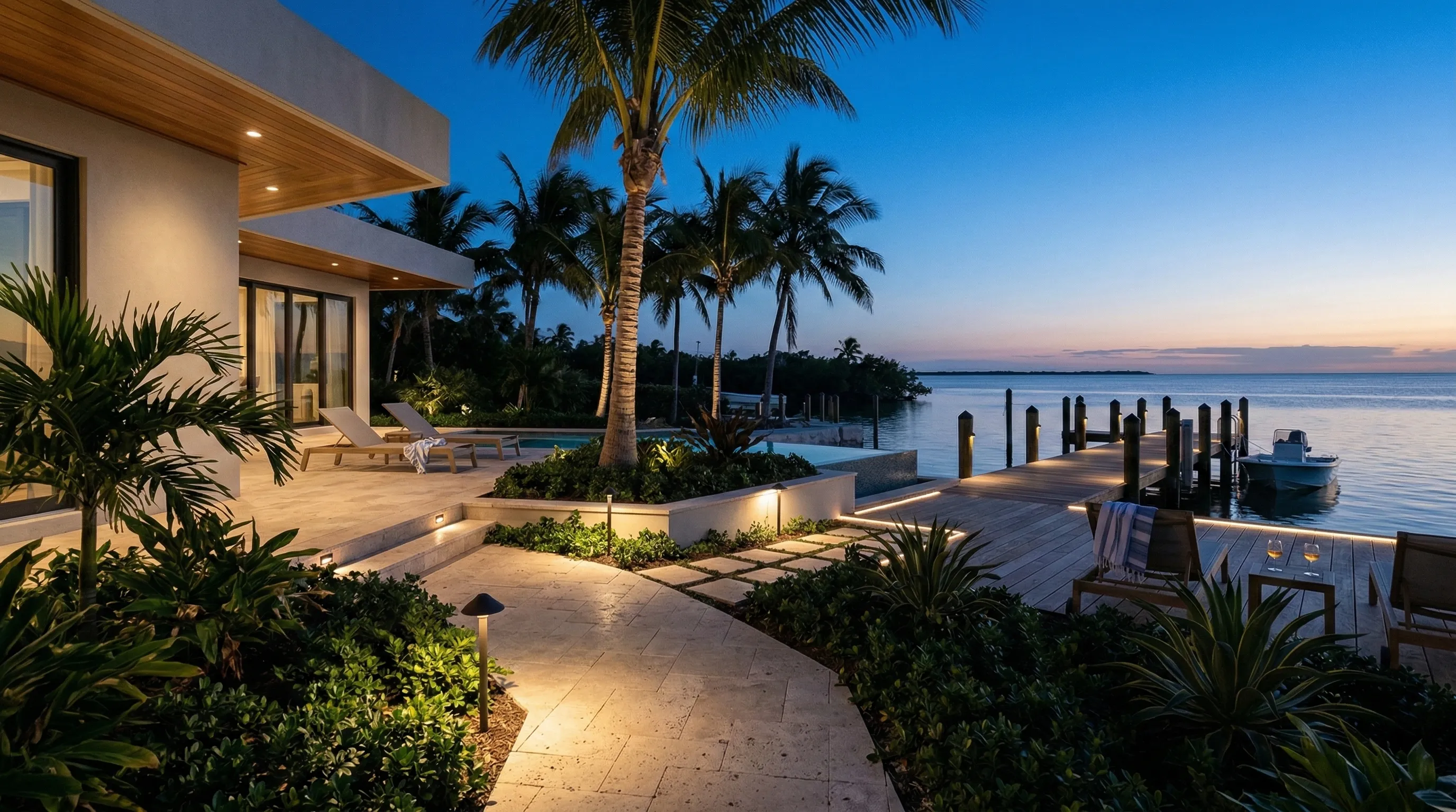 The right lighting doesn’t “decorate” a home—it defines it. We design layered, glare-controlled lighting for luxury interiors, landscapes, and docks, then commission it so every scene feels natural and consistent.